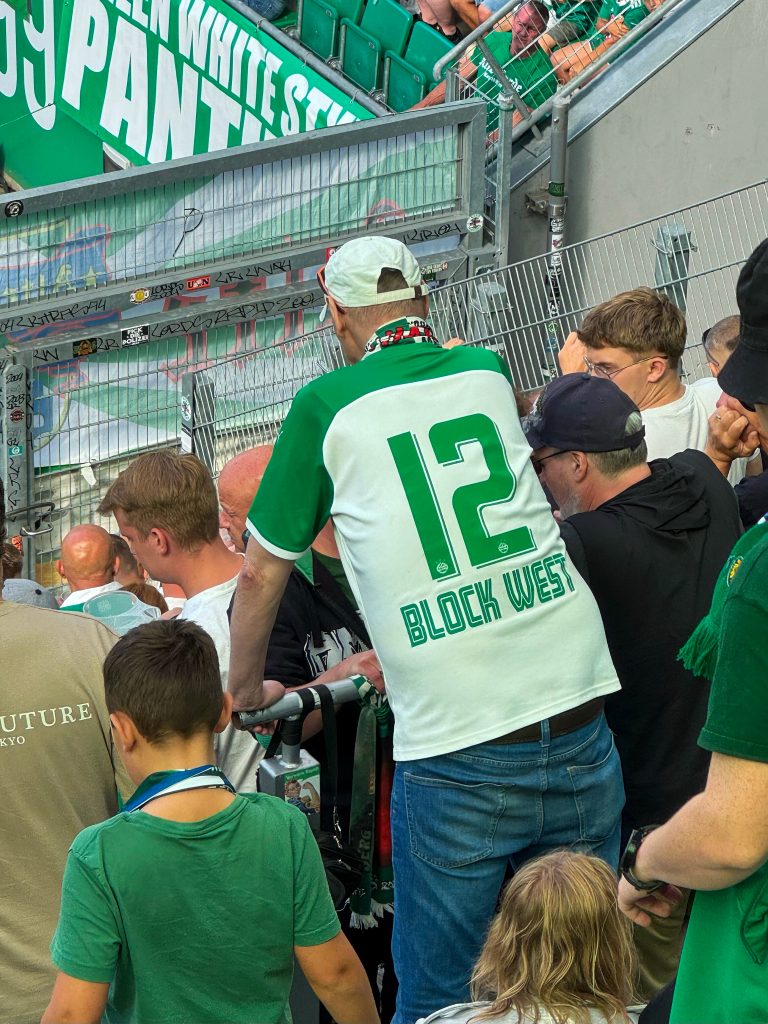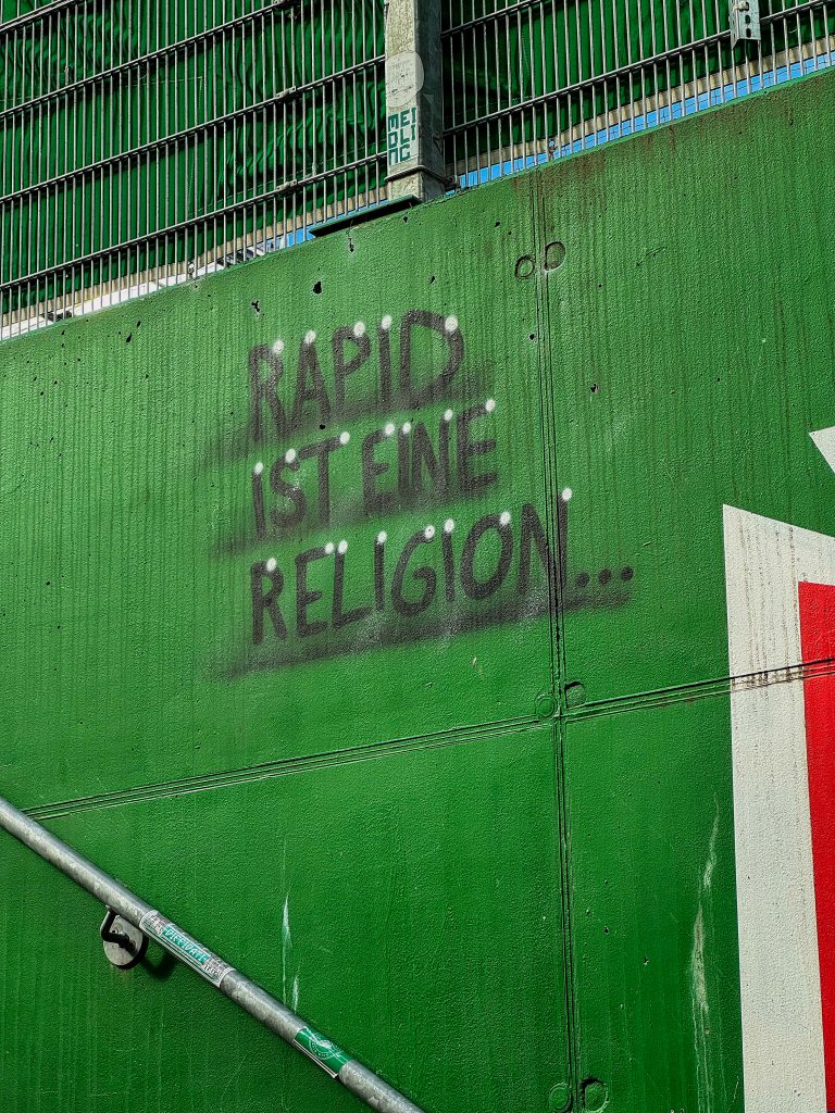 In the 75th minute of every match, fans honour this century-old tradition—a tribute to the fighting spirit of Rapid Wien, whose teams famously turned countless matches around in the final fifteen minutes during the 1920s. In a stadium in 2025, it is a rare sight: no one reaches for their smartphone to immortalise the moment. Here, they don’t take photos; they sing. Block West deliberately cultivates a touch of darkness.