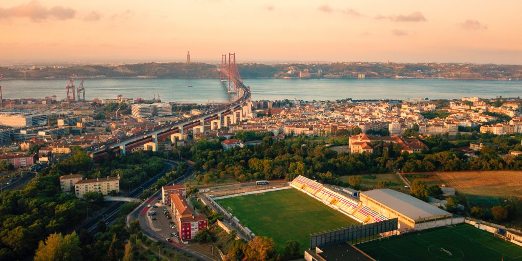 Based in the Alcântara region of Lisbon, the club plays in Liga 3 in Portugal, where the spectacular 25 April Bridge looms over their quaint pastel-coloured Estádio da Tapadinha stadium. It is a beautiful and refreshing sight not often seen in our modern game.