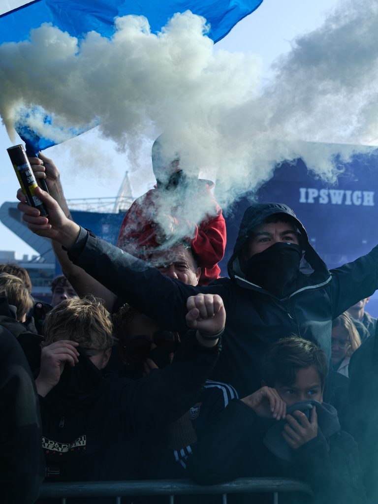 As Ipswich supporters spilt into the streets after the final whistle, singing, smiling, wrapped in blue and white, Crespo’s camera told the story better than words could. A long wait was over, and a visiting photographer had witnessed English football in its truest form: passionate, local, and deeply human.