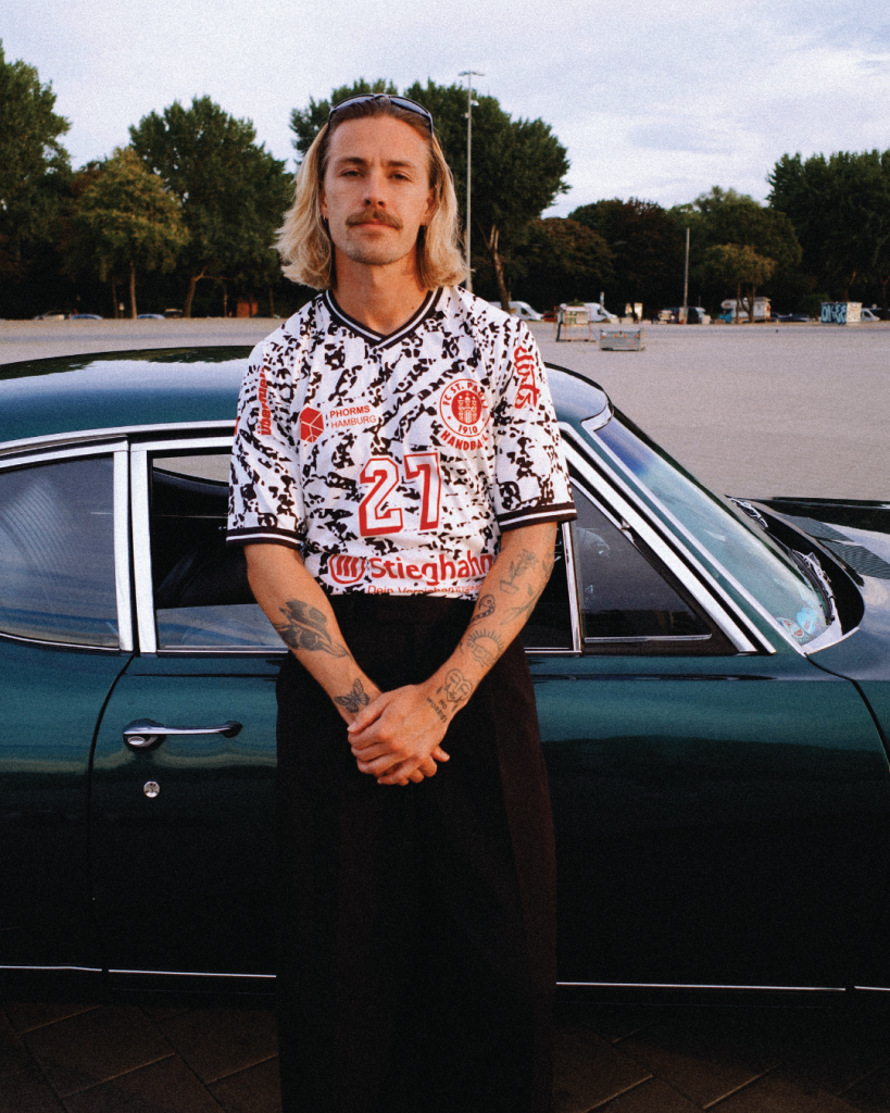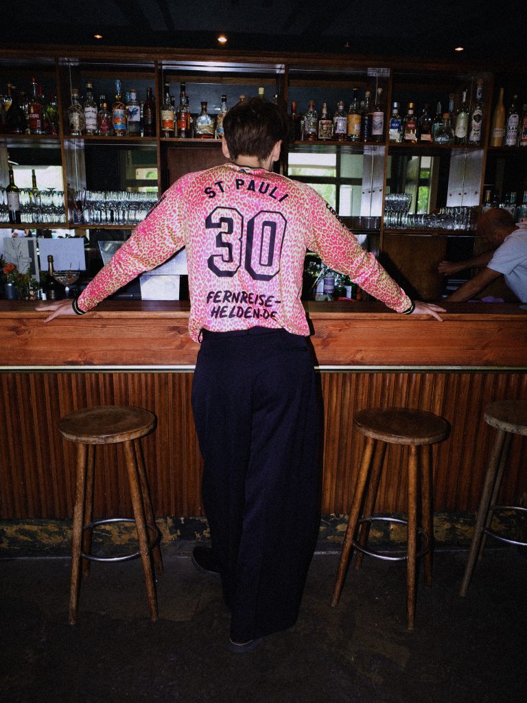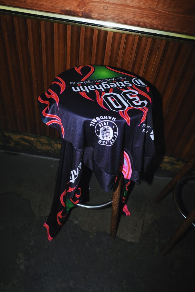 For Jemilla, the collaboration came about quite naturally. “Pepe just asked me!” she laughs. “We had been in touch previously, as Pepe is a talented football culture photographer and brought some of his prints to a local pop-up I was having for my brand. He has been involved with the St. Pauli Handball 1. Männer / FC St. Pauli Handball 1st Men’s Team for a long time as both a player and a coach, and he’s also responsible for having the kits made each season. They often ask local artists to design something – a local graffiti artist, Bobby Serrano, had done the previous season’s.”
