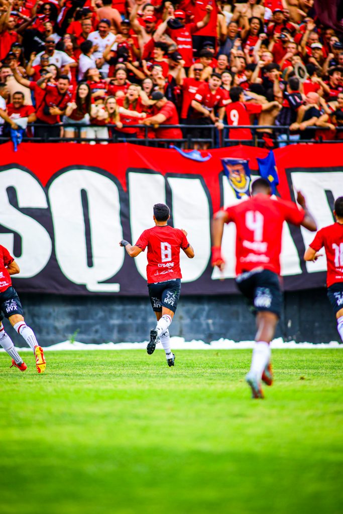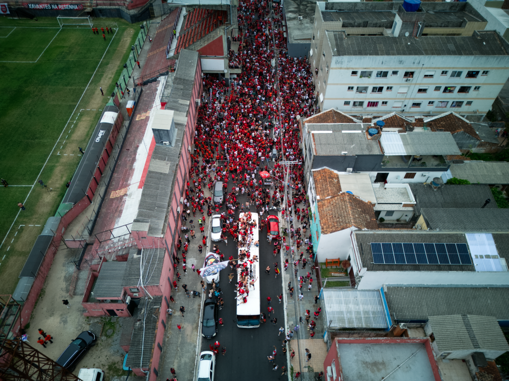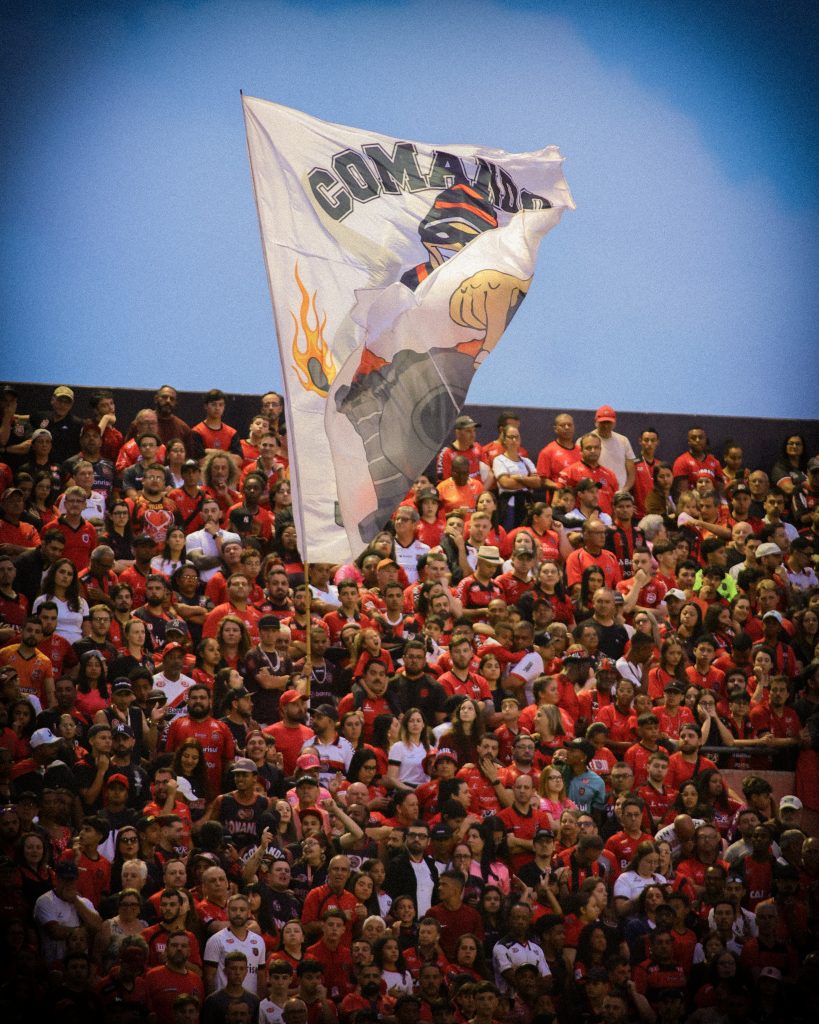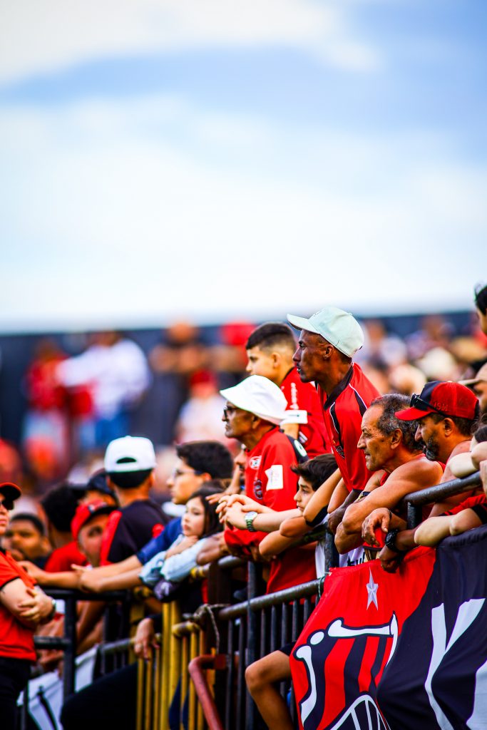 There are no corporate lounges here. No polished hospitality zones. Bento Freitas is concrete, noise, flags, smoke, and sweat. The stands rise close to the pitch, trapping sound and emotion inside. When the Xavante sing, it doesn’t echo — it presses down.