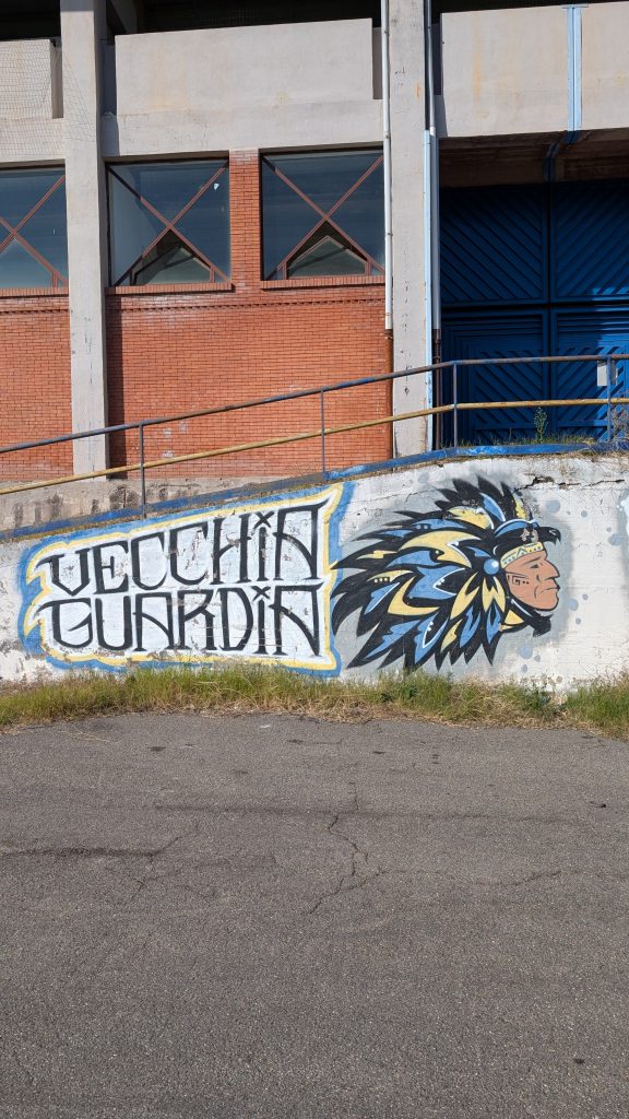 There are two sets of ultras there, the Curva Nord and the Curva Sud. Curva Nord showed an impressive choreo which covered the whole stand, while Curva Sud lit pyro around the edges of their packed stand.