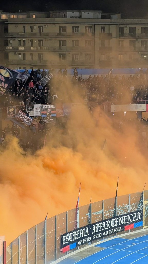 Catania is currently top of Serie C, and the fans are in delirium. The atmosphere was superb, undoubtedly one of the best I have ever experienced.