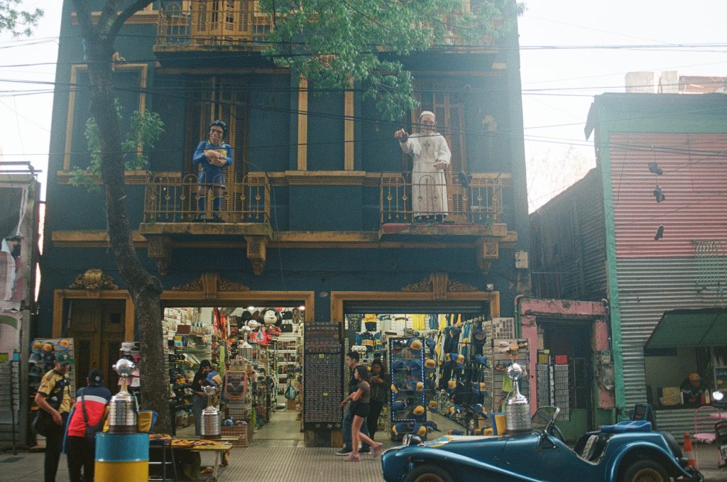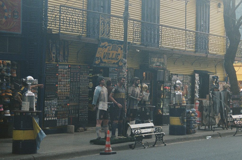 I check my camera, the batteries, and the film two or three times before heading toward San Telmo to walk through the famous feria. The air is cool and damp. It looks like it’s going to rain, but the market is buzzing. With every Boca shirt I see on the street and every blue-and-yellow souvenir the vendors and artists are selling, my thoughts drift away from the market and toward the stadium.